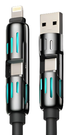 Engineered with reinforced connectors and a robust design, this 4-in-1 charging cable is perfect for everyday use. It can withstand daily bending, twisting, and pulling, making it ideal for those who need a tough, reliable charging solution.